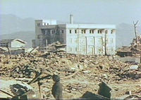爆心地から東を望む、前方のビルは千代田生命広島支店